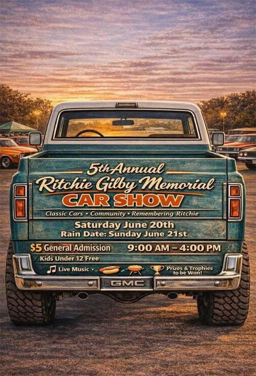 | | | | Event Name : | Richie Gilby Memorial Classic Car Show (June 20) |