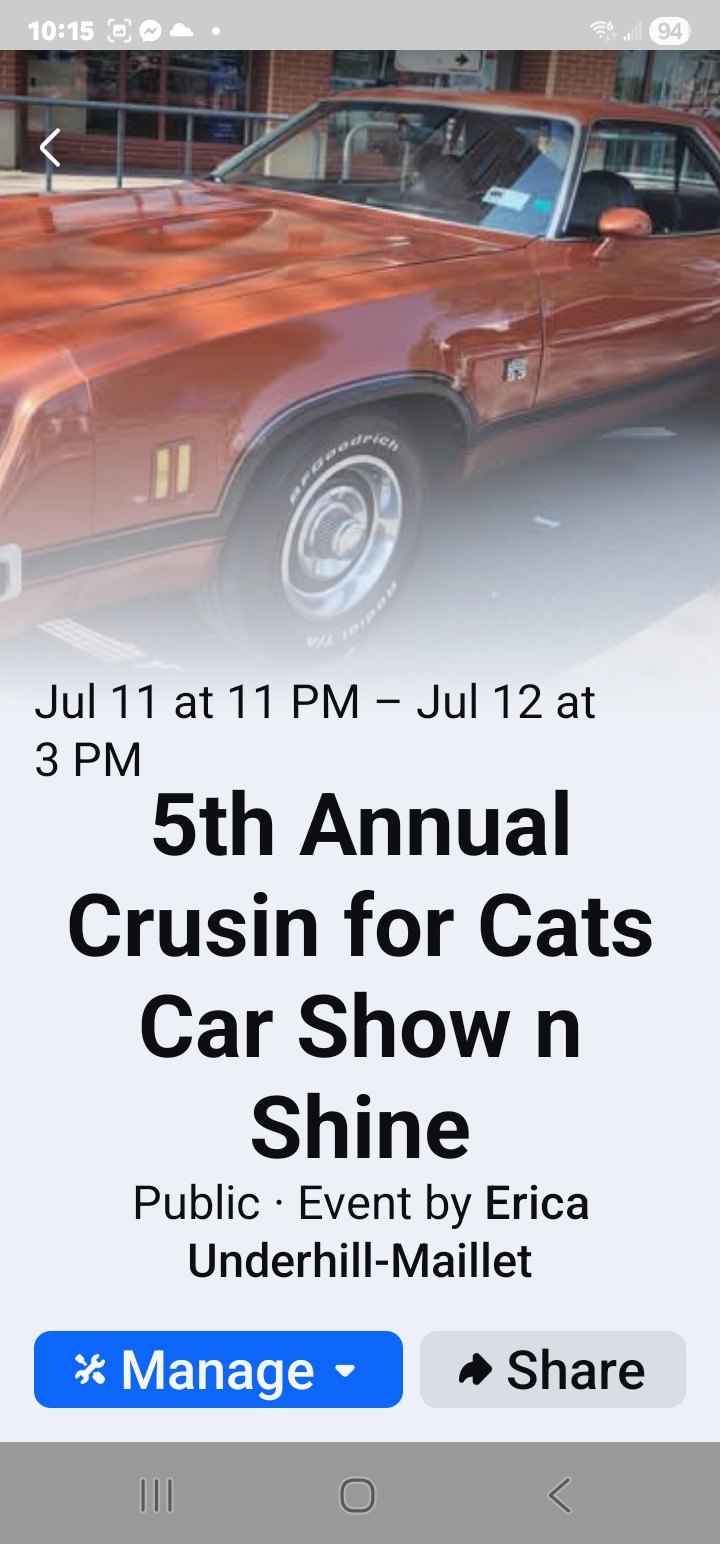 | | | | Event Name : | Cruising for Cats Car & Bike show (July 11) |
