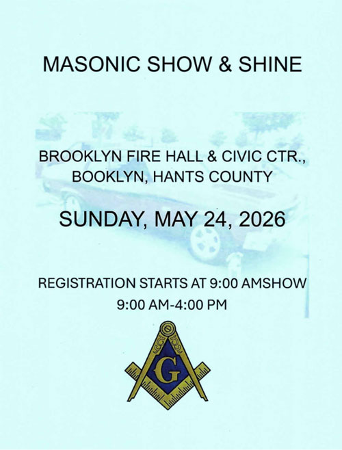 | | | | Event Name : | Masonic Show & Shine (May 24) |